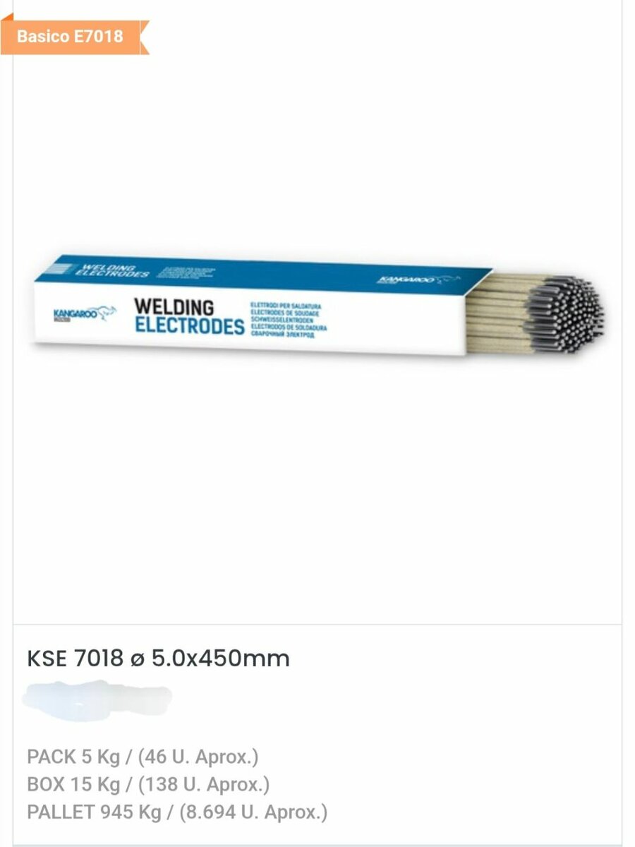 Électrodes de soudure haute qualité KSE 7018, diamètre 5.0mm, longueur 450mm. Idéales pour soudures robustes et durables. Parfaites pour professionnels et bricoleurs exigeants. Pack de 5kg contient environ 46 unités.