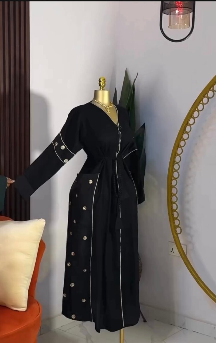This elegant black abaya features intricate detailing and a flattering tie-waist design, perfect for modest fashion lovers. Crafted for style and comfort, it's suitable for casual outings or special occasions. A must-have addition to any wardrobe, offering both sophistication and versatility.
