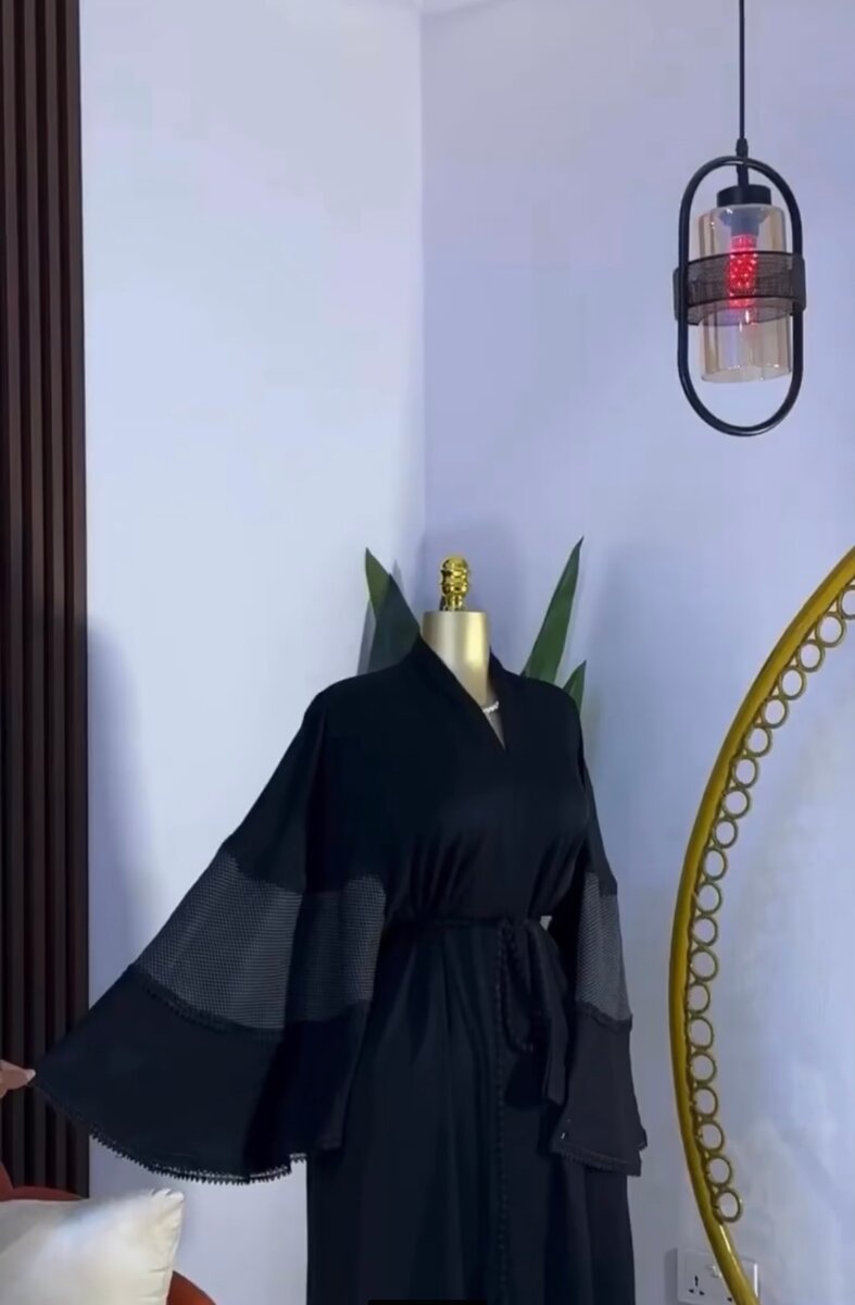 Exude elegance with this luxurious black kimono robe, perfect for lounging at home. Made from premium materials, it offers comfort and style with flowy sleeves and a flattering belt. Ideal for layering or as a stylish cover-up.