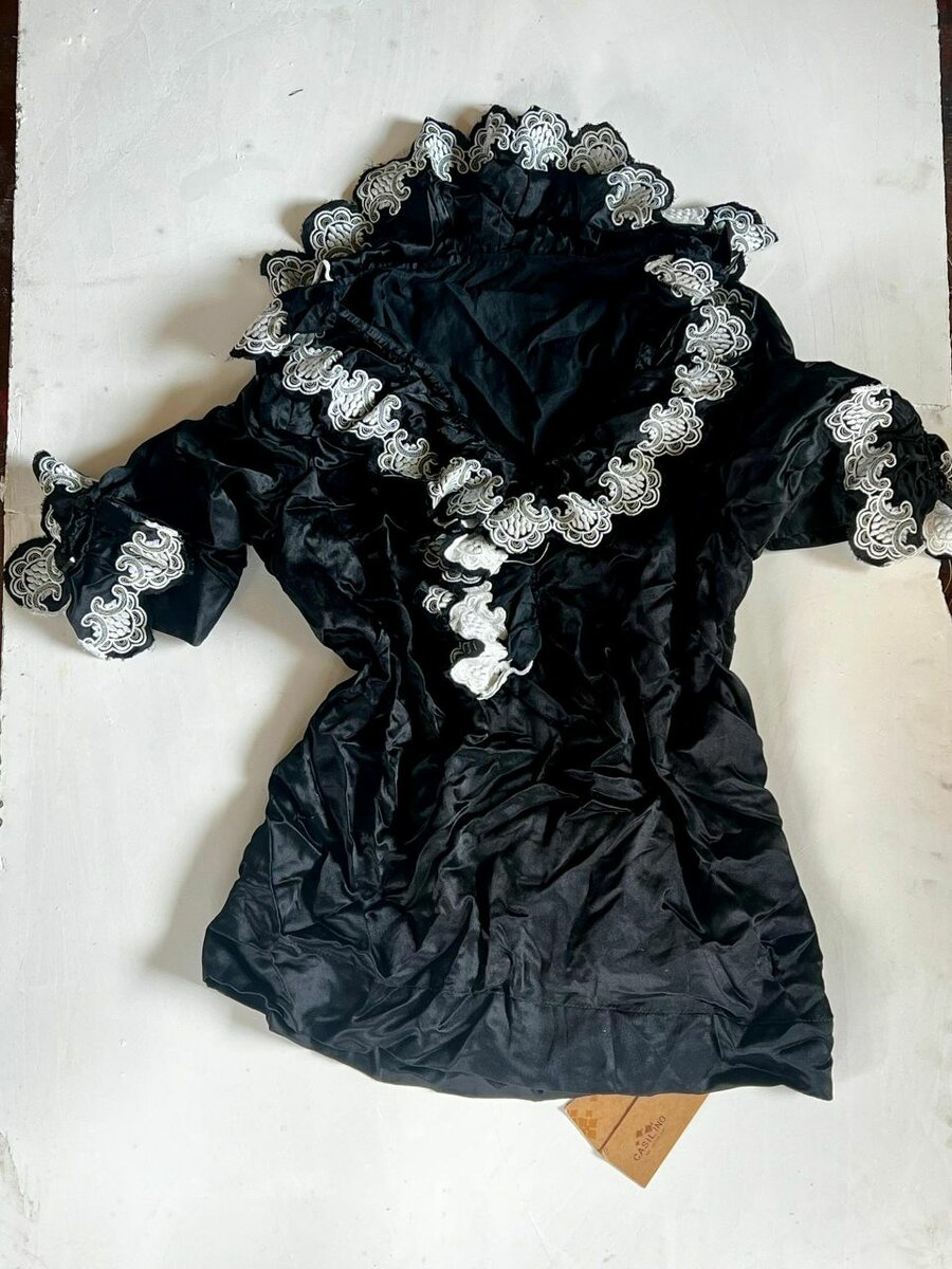 This elegant black dress features intricate white lace detailing, offering a sophisticated look for special occasions. Crafted from quality materials for a comfortable fit, it's perfect for evenings out or stylish gatherings. A must-have addition to any wardrobe.