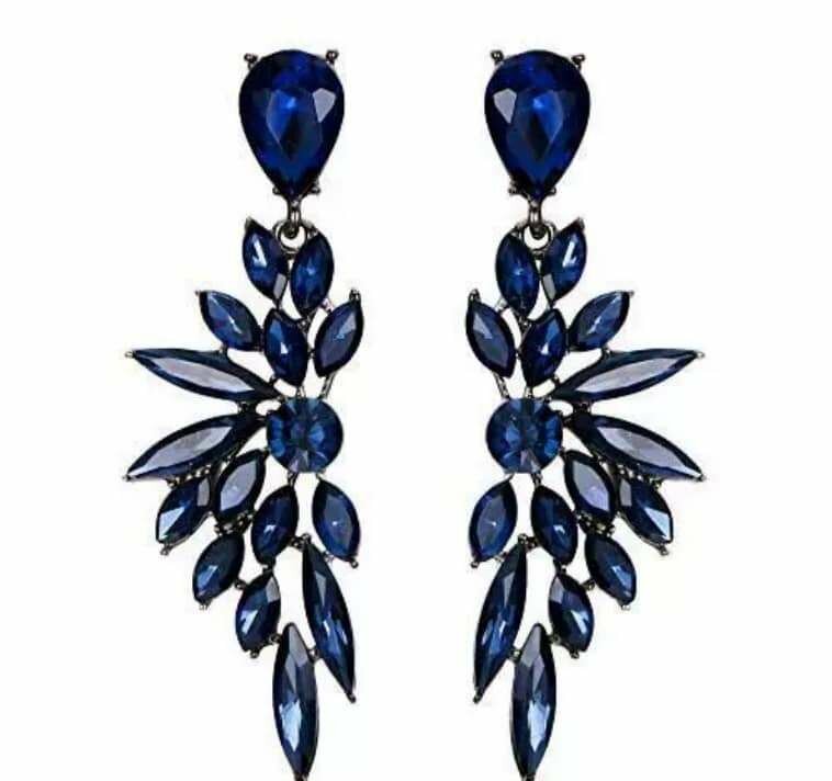 Sparkle with elegance wearing these stunning blue crystal earrings. Perfect for formal events or adding a touch of glamour to any outfit, their intricate design showcases shimmering stones that catch the eye. An ideal choice for evening wear, weddings, or gifting to a loved one.