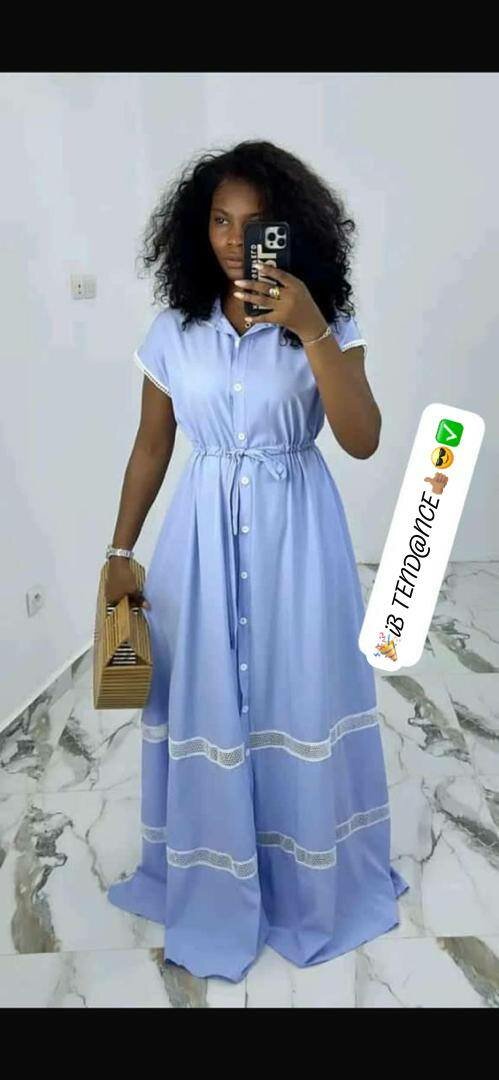 Discover timeless elegance with this stunning blue maxi dress. Featuring delicate lace detailing and a flattering tie waist, it's perfect for summer outings and special occasions. The lightweight material ensures comfort, making it an ideal choice for all-day wear. Pair with your favorite accessories for a complete look. Elevate your wardrobe with this versatile piece!