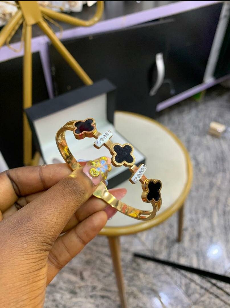 This stunning bangle bracelet features a timeless clover design, perfect for adding elegance to any outfit. Crafted to perfection, it's ideal for both day and night occasions. A must-have accessory for fashion lovers.