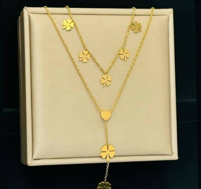 Enhance your outfit with this elegant clover necklace set, featuring a layered design with charming clover motifs. Made with high-quality materials, it's perfect for adding a touch of sophistication to any look, whether it be a casual day out or a special evening. An ideal gift for yourself or a loved one, this necklace set promises to elevate any jewelry collection.