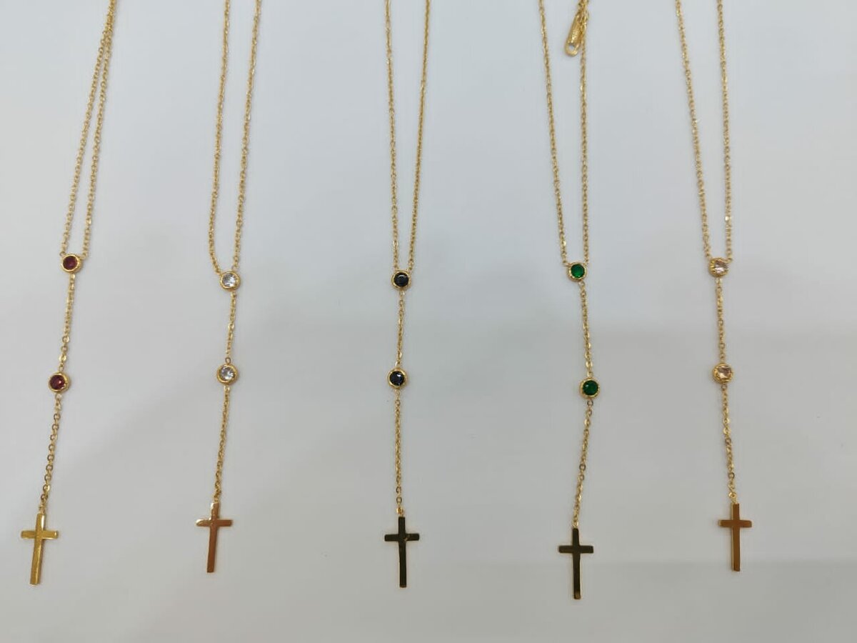 Discover our elegant cross pendant necklaces, adorned with vibrant stones and delicate gold chains. Ideal for both everyday wear and special occasions, these necklaces are perfect for adding a touch of sophistication to your outfit. Makes a thoughtful gift.