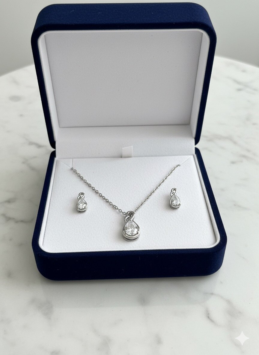 Magnifique ensemble de bijoux en argent comprenant un collier et des boucles d'oreilles assorties. Parfait pour ajouter une touche d'élégance à toute tenue. Idéal pour les soirées et comme cadeau raffiné.