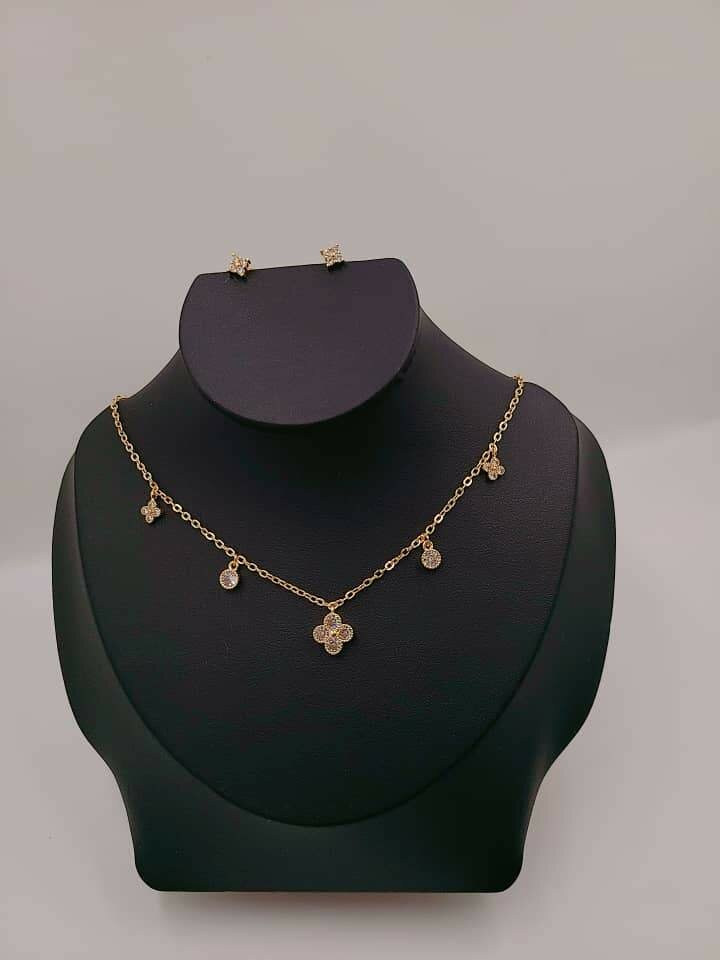 Cet ensemble raffiné de collier et boucles d'oreilles en or et argent ajoute une touche sophistiquée à votre tenue. Parfait pour les occasions spéciales, il se marie parfaitement avec une robe élégante ou une tenue de soirée. Faites-vous remarquer avec style et glamour.