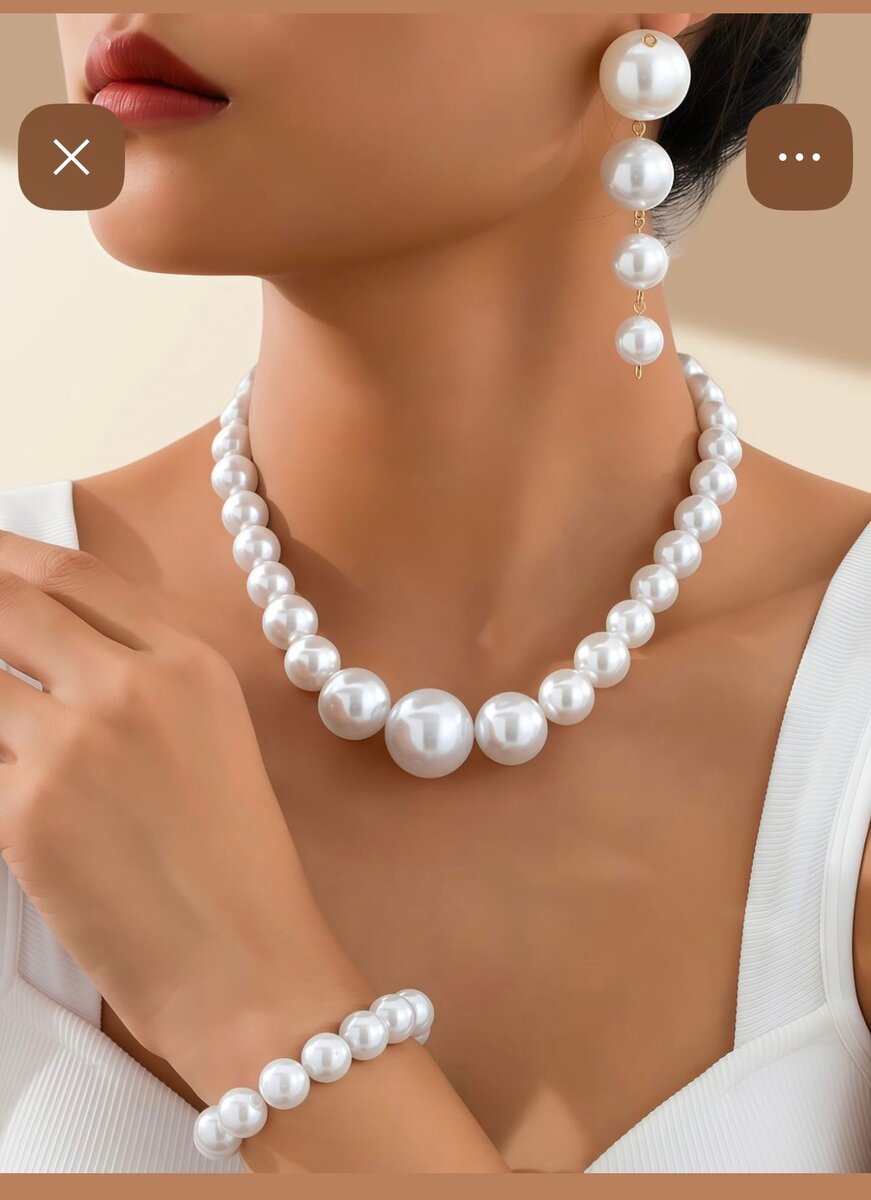 Magnifiez votre allure avec cet ensemble de bijoux en perles, comprenant un collier, un bracelet et des boucles d'oreilles élégantes. Parfaits pour les occasions spéciales, ces bijoux ajoutent une touche de sophistication et d'élégance à votre tenue. Idéal pour les mariages, les dîners ou cadeaux.