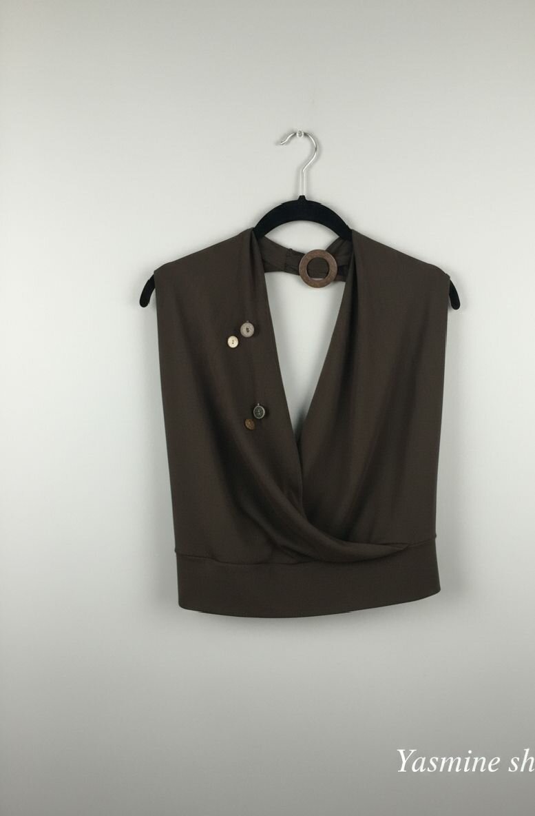 Ce haut sans manches marron est parfait pour un look chic et sophistiqué. Son design avec col bijou et boutons décoratifs ajoute une touche unique. Idéal pour les sorties en journée ou en soirée, ce haut peut être facilement combiné avec une jupe ou un pantalon. Matériau de qualité pour un confort optimal.