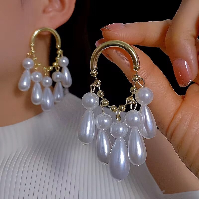 Elevate your style with these elegant pearl hoop earrings. Featuring cascading pearls on a gold hoop, they're perfect for any special occasion. These earrings are a stunning choice to add a touch of glamour to your ensemble. Ideal for parties, weddings, or a chic night out.