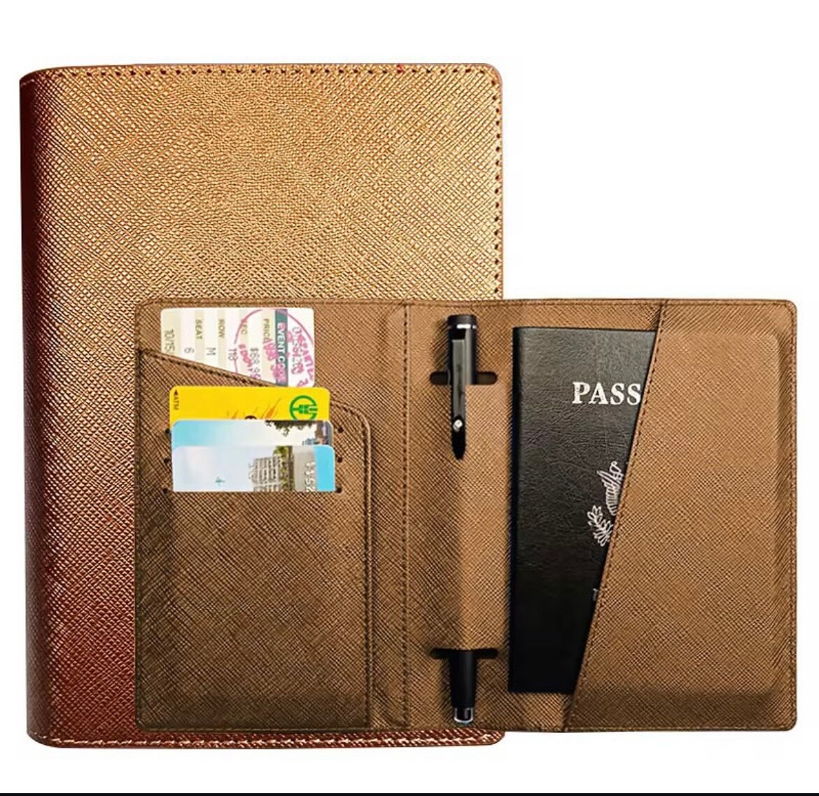 Discover the perfect travel companion with our elegant passport holder and wallet. Crafted from premium materials, it features dedicated slots for your passport, cards, and a pen. Ideal for business trips or vacations, ensuring your essentials stay organized and secure. Travel with confidence and style.