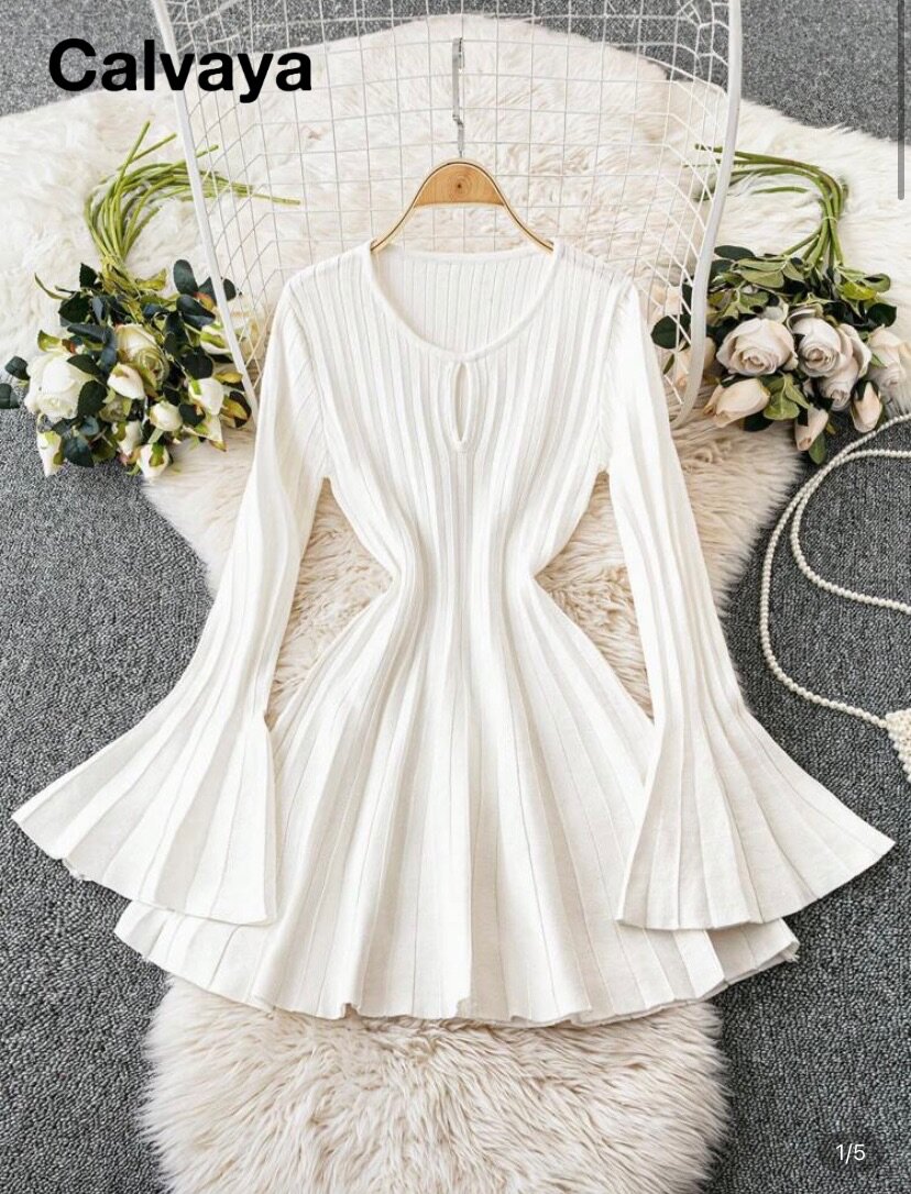 Discover elegance with this white pleated dress featuring a flattering silhouette and stylish bell sleeves. Perfect for women seeking a chic and sophisticated look for special occasions or upscale events. Made with high-quality materials ensuring comfort and style.