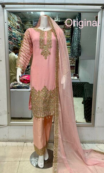 3 Pcs Woman's Stitched Katan Silk Embroidered Mirror Work