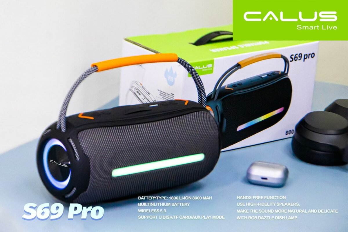 Découvrez l'enceinte Bluetooth Calus S69 Pro avec batterie 8000mAh. Son stéréo haute qualité, fonction mains libres et design élégant. Parfaite pour vos soirées et déplacements.