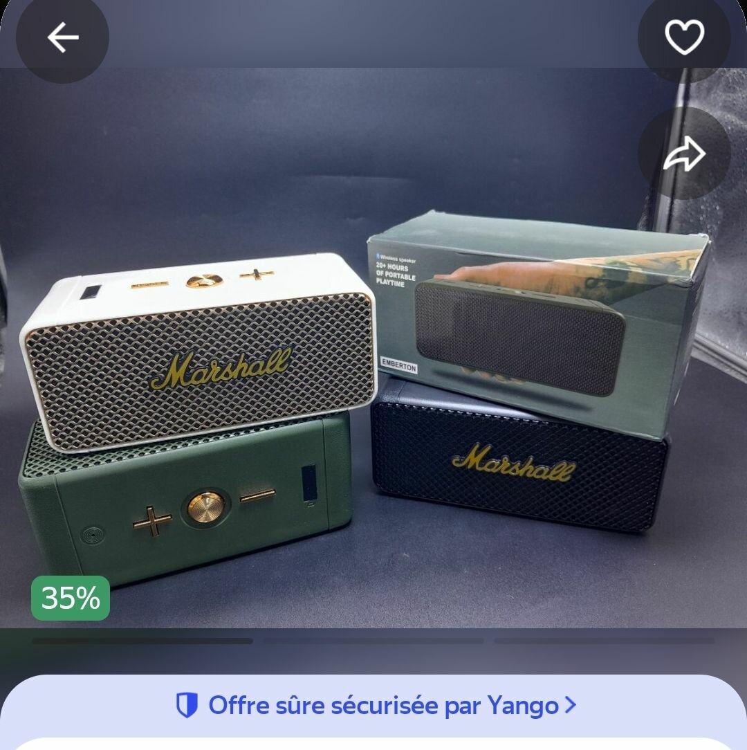 Découvrez une qualité sonore exceptionnelle avec l'enceinte Bluetooth Marshall. Compacte et élégante, elle est idéale pour toutes vos activités, que ce soit à la maison ou en déplacement. Profitez d'une connectivité sans fil simple et d'une autonomie longue durée. Un choix parfait pour les amateurs de musique.