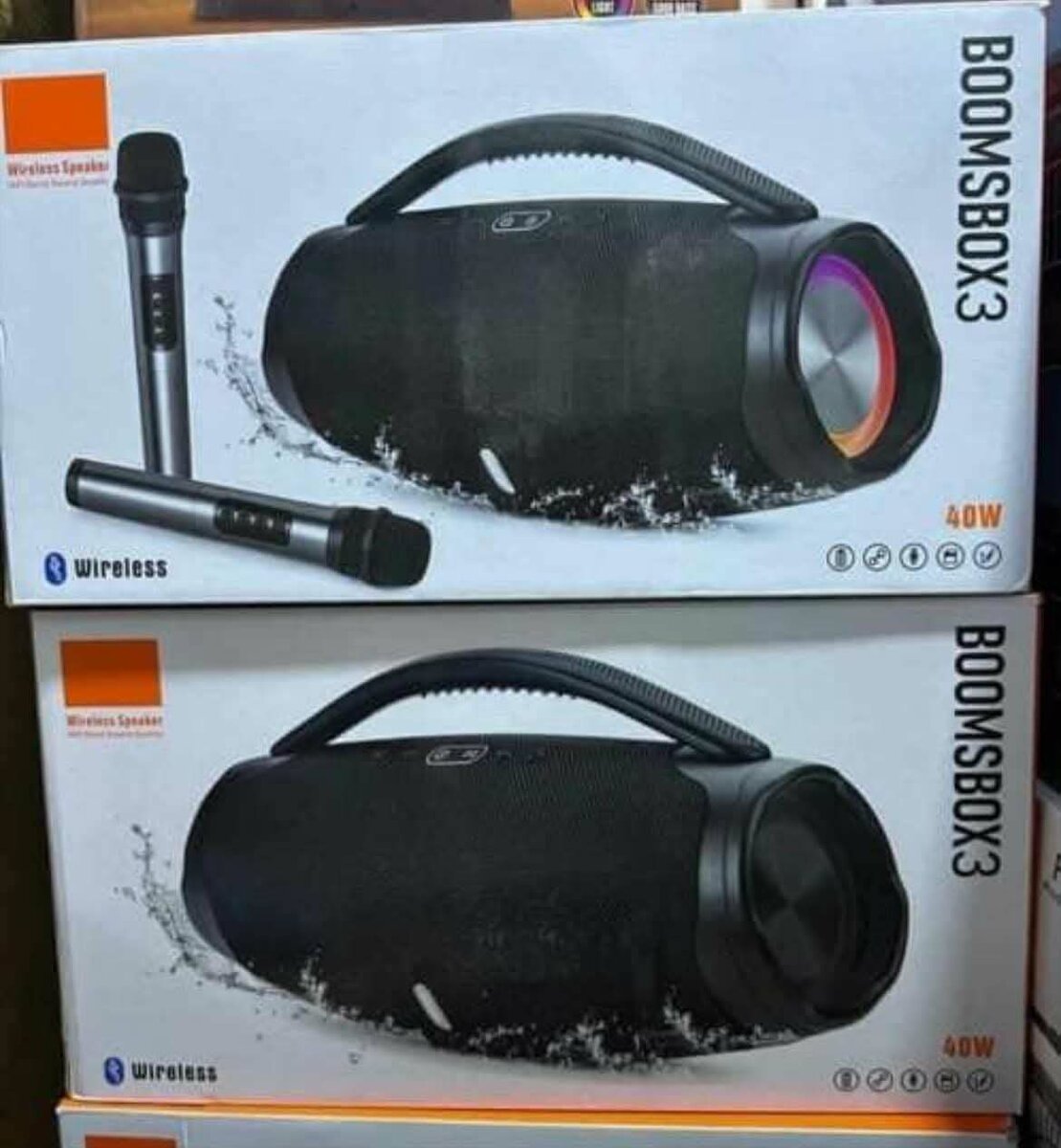 Profitez d'un son exceptionnel avec l'enceinte Bluetooth BOOMSBOX3 de 40W. Portable, sans fil, elle est idéale pour les fêtes et les événements. Inclut un microphone pour karaoké. Son clair et design moderne. Parfait pour l'intérieur et l'extérieur.