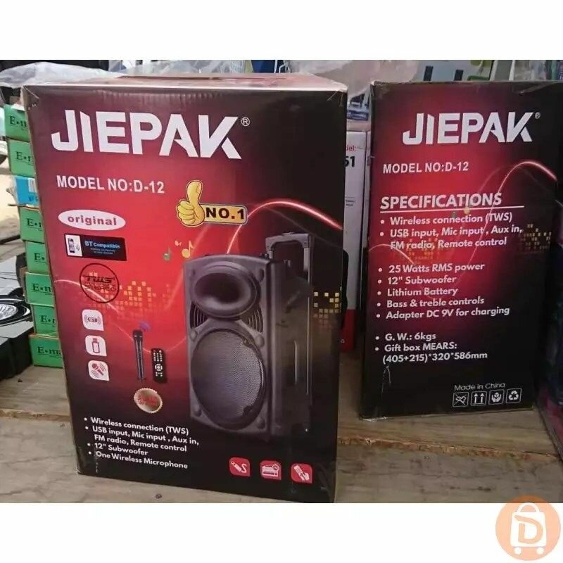 Profitez d'un son puissant avec l'enceinte JIEPAK D-12! Avec sa connexion sans fil, ses ports USB et AUX, et sa télécommande incluse, elle est idéale pour animer vos soirées. Son subwoofer de 12" assure des basses profondes. Parfaite pour la maison ou les événements extérieurs. Léger et facile à transporter!