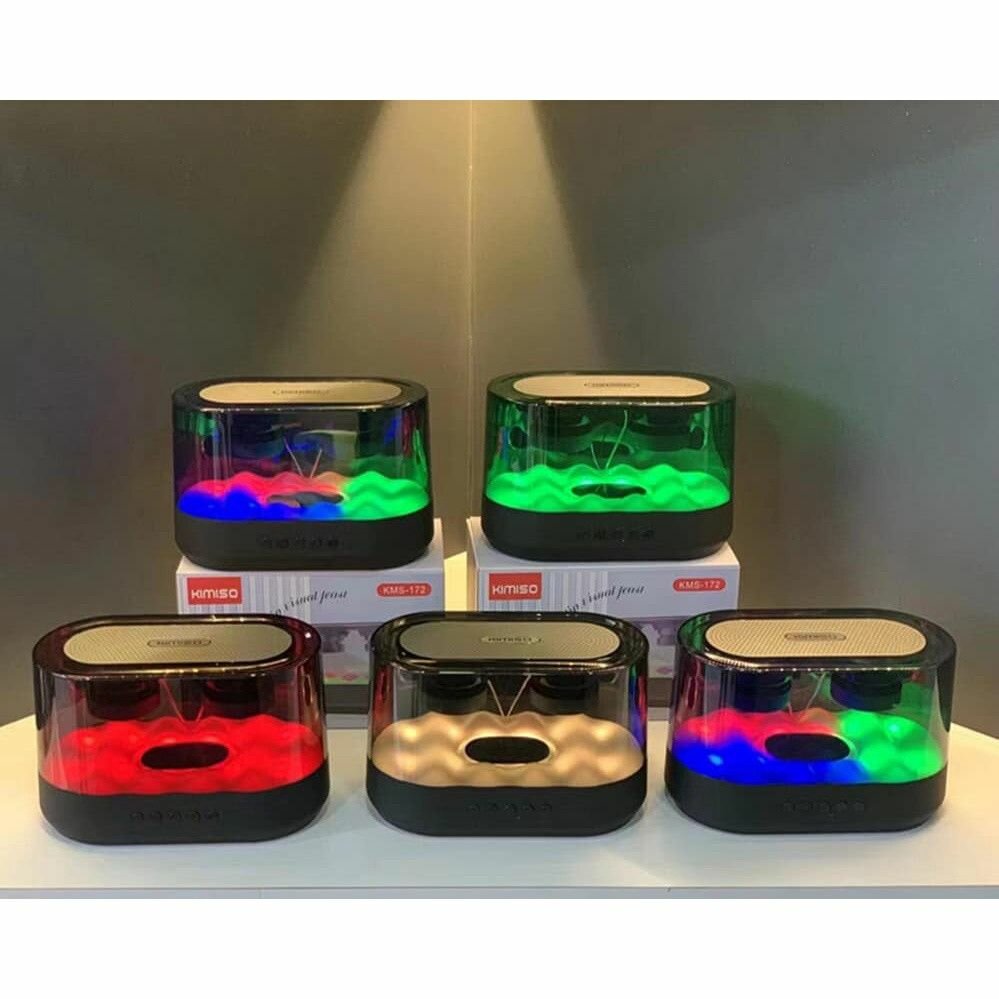 Découvrez l'enceinte Bluetooth Kimiso KMS 172 : design moderne, LED multicolores pour une ambiance unique. Profitez d'une qualité sonore exceptionnelle avec une plage de 100Hz-20kHz et des fonctions pratiques comme radio et appels mains libres. Compacte avec une batterie intégrée puissante de 1200-2200mAh. Parfaite pour toutes vos occasions !