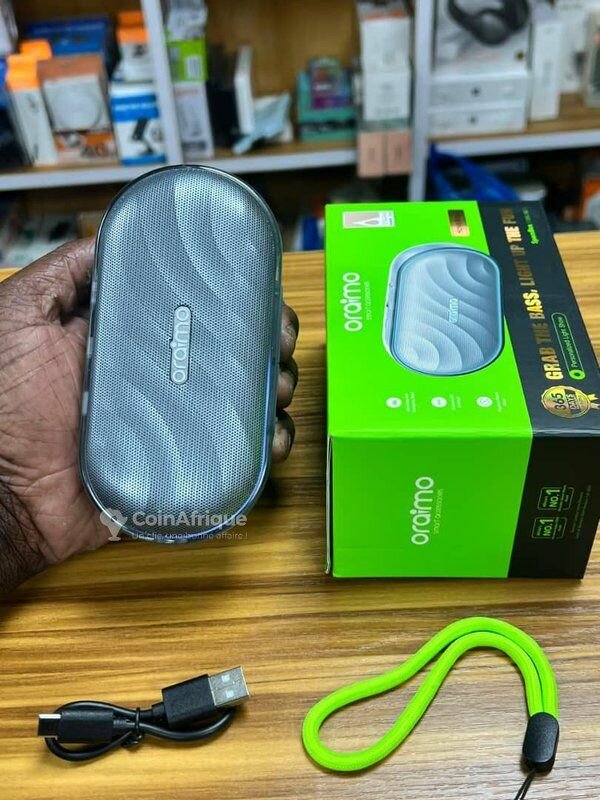 Découvrez l'enceinte Bluetooth Oraimo pour un son clair et puissant. Équipée d'un micro intégré antibruit, elle assure des appels sans interférence. Idéale pour la maison ou le bureau, profitez de vos morceaux préférés partout. Design élégant avec éclairage LED.
