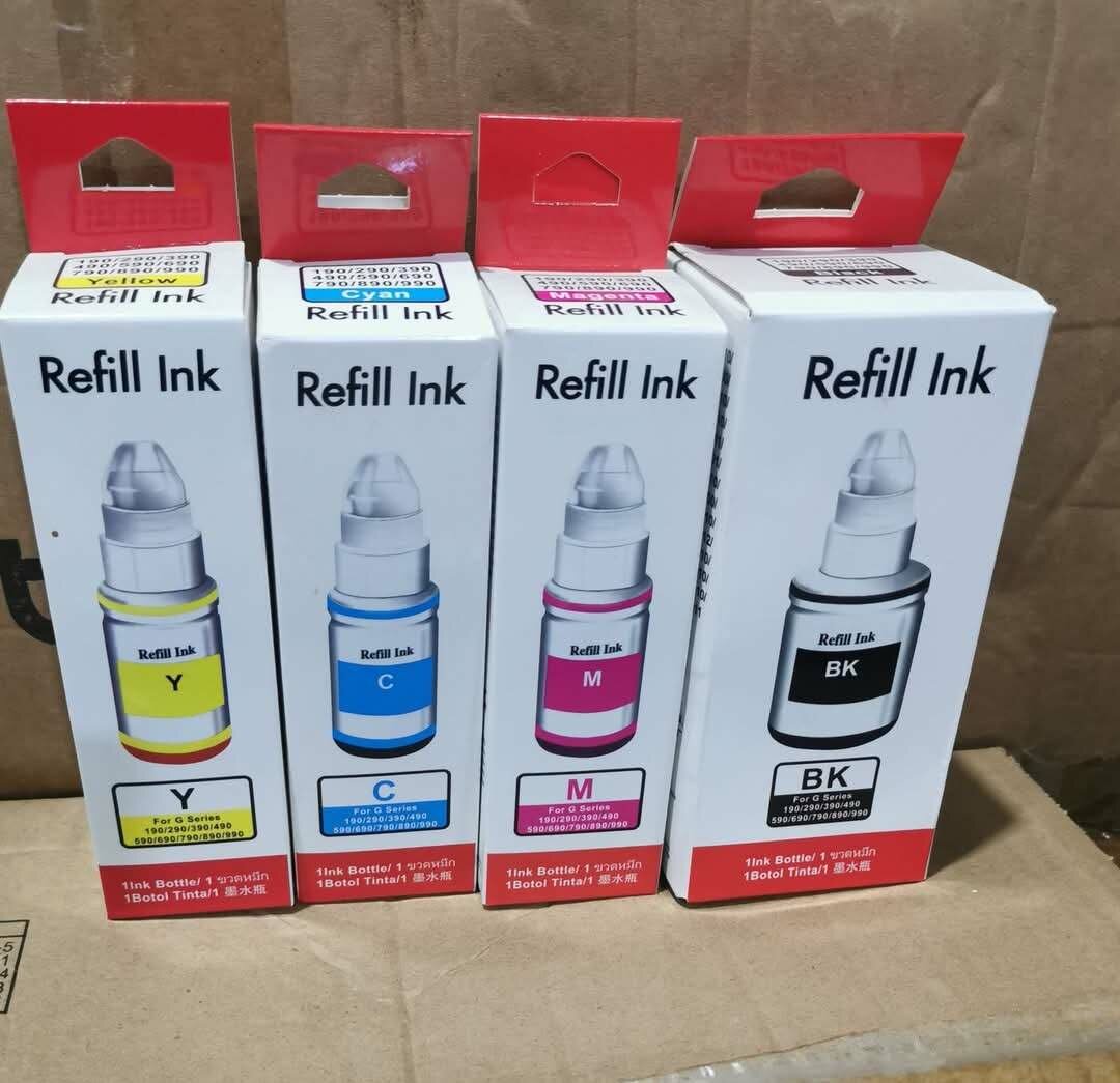 Kit de 4 bouteilles d'encre de recharge pour imprimante compatible avec la plupart des modèles. Couleurs vibrantes : jaune, cyan, magenta, noir pour des impressions éclatantes et durables. Facile à utiliser, parfait pour bureau ou maison.