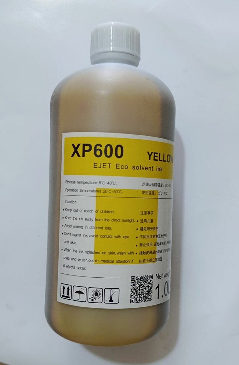 Encre solvant éco XP600 jaune idéale pour impressions de haute qualité. Utilisation parfaite pour impressions professionnelles. Compatible avec imprimantes solvant.