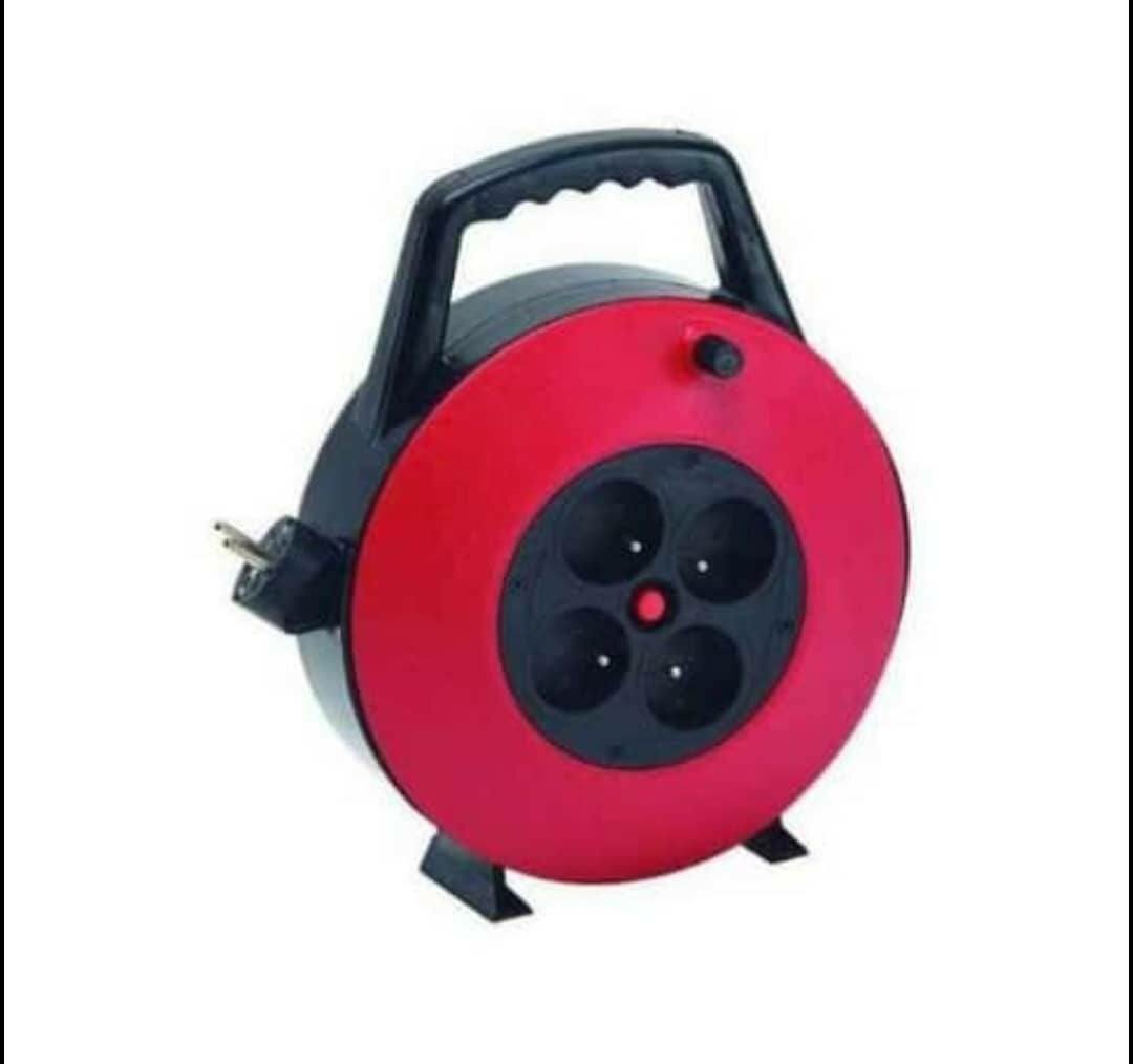 Pratique enrouleur de câble électrique avec plusieurs prises. Idéal pour la maison ou le bureau, simplifie le rangement des câbles. Compact et portable avec poignée.