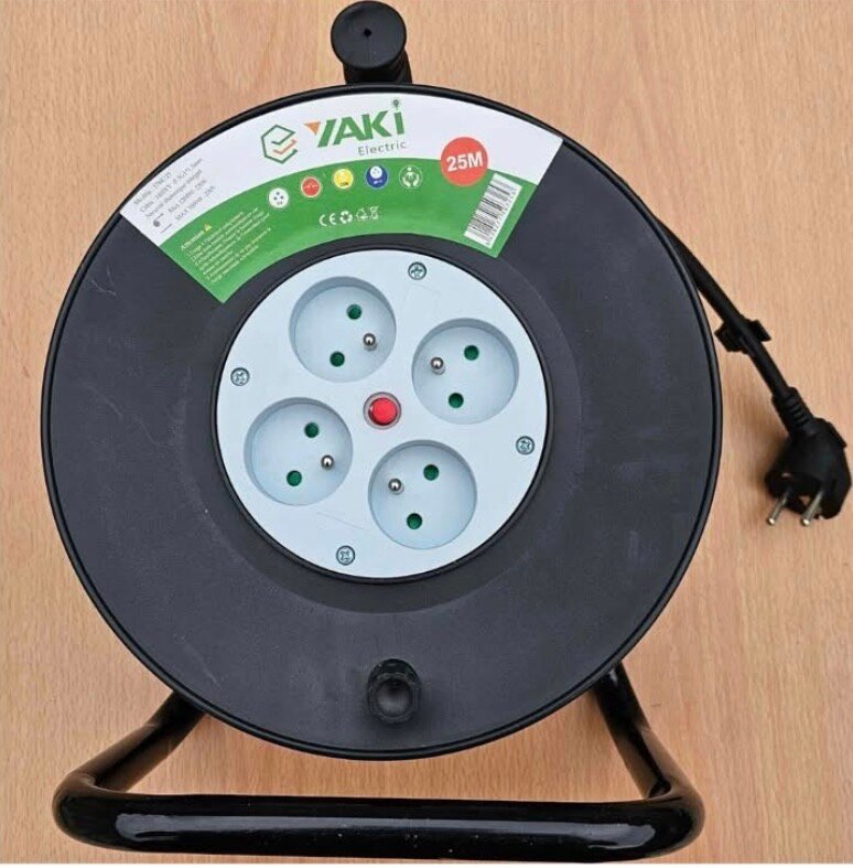 Enrouleur électrique de 25 mètres, idéal pour les chantiers ou le jardinage. Équipé de 4 prises pour une utilisation polyvalente. Sa conception robuste garantit sécurité et durabilité. Parfait pour les projets nécessitant une extension d'alimentation fiable.