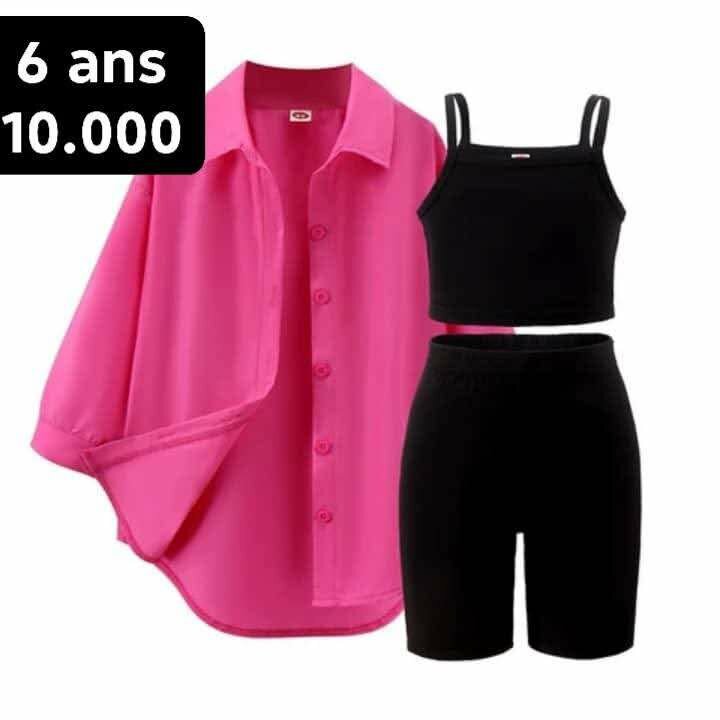Parfait pour un look tendance, cet ensemble 3 pièces pour fille comprend une chemise rose vif, un débardeur noir et un short assorti. Idéal pour les sorties décontractées ou les occasions spéciales.