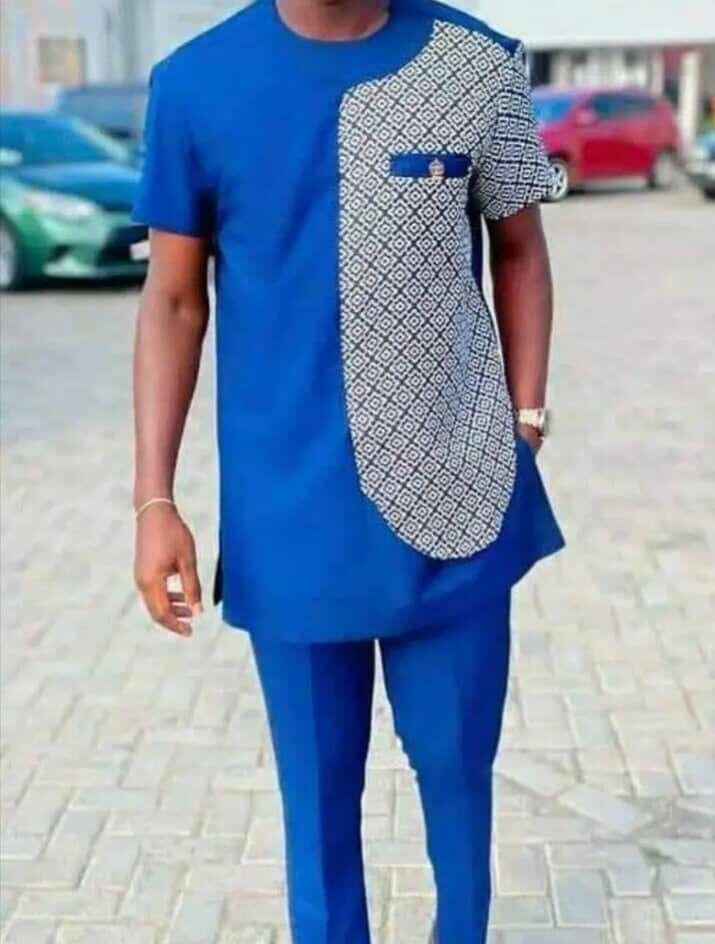 Découvrez cet élégant ensemble africain bleu, parfait pour toutes les occasions spéciales. Fabriqué avec des matériaux de haute qualité, son design inclut un motif géométrique unique qui attire le regard. Idéal pour un style chic et distingué.