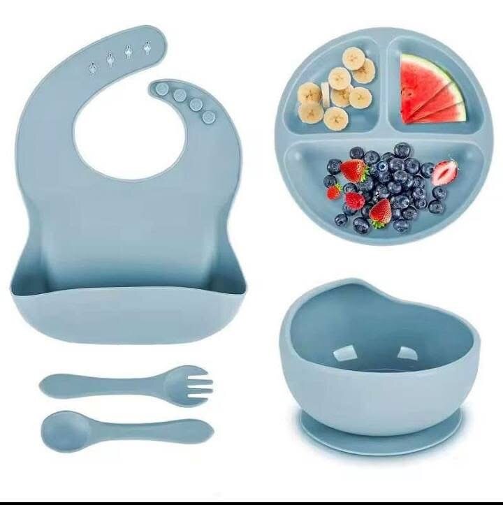 Ensemble assiette et bol en ventouse, bavoir en silicone ,