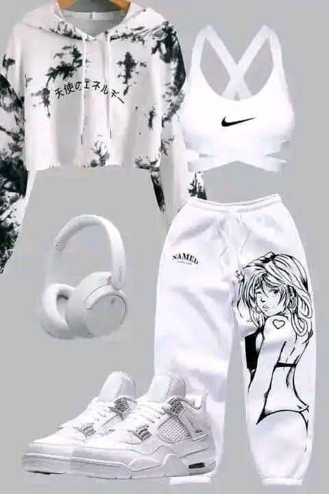 Cet ensemble sportif pour femme comprend un sweat à capuche tendance, un pantalon imprimé moderne, une brassière de sport et des baskets confortables. Parfait pour un look athlétique et stylé, idéal pour la salle de sport ou les sorties décontractées.