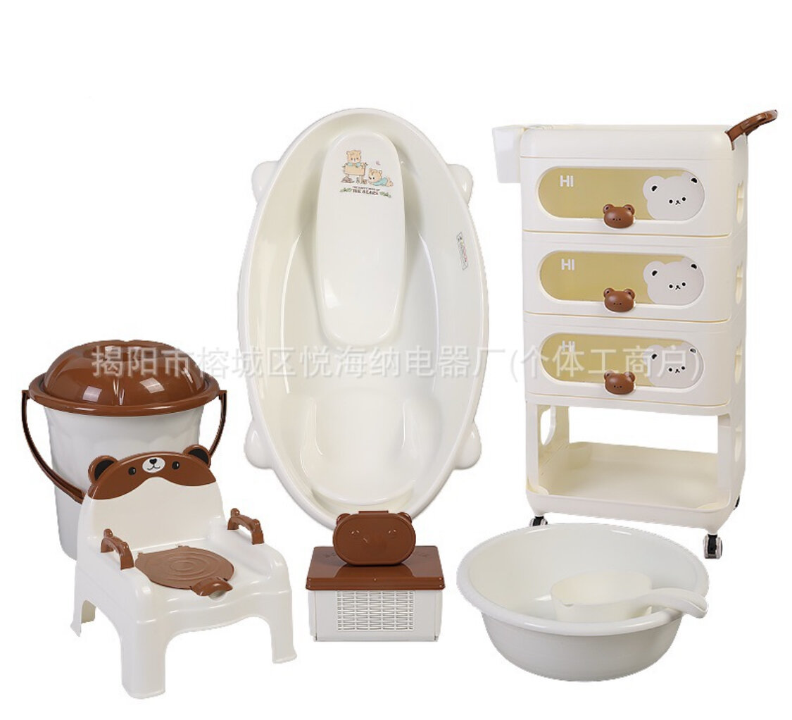Cet ensemble de bain pour bébé inclut baignoire, pot, chaise et rangement. Idéal pour un bain sécurisé et organisé de votre enfant. Fabriqué avec des matériaux robustes et sûrs, il est facile à nettoyer et transportable. Parfait pour les nouveaux parents!