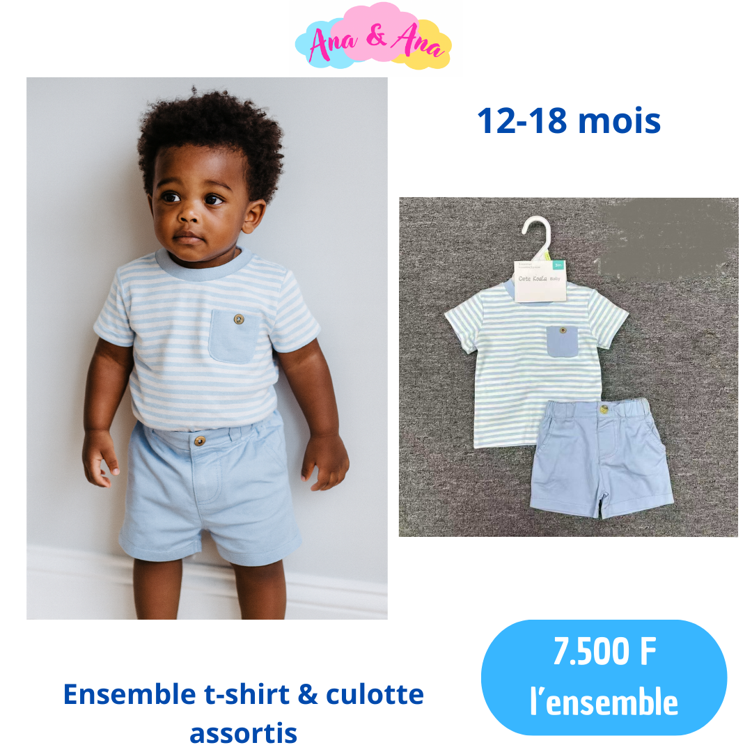 Ensemble adorable pour bébé de 12 à 18 mois comprenant un t-shirt à rayures et un short assorti. Parfait pour les journées d'été, il offre confort et style à votre petit. Fabriqué avec des matériaux doux, idéal pour la peau sensible des bébés. Avec une poche pratique sur le t-shirt, c'est un choix pratique et tendance pour toute occasion.