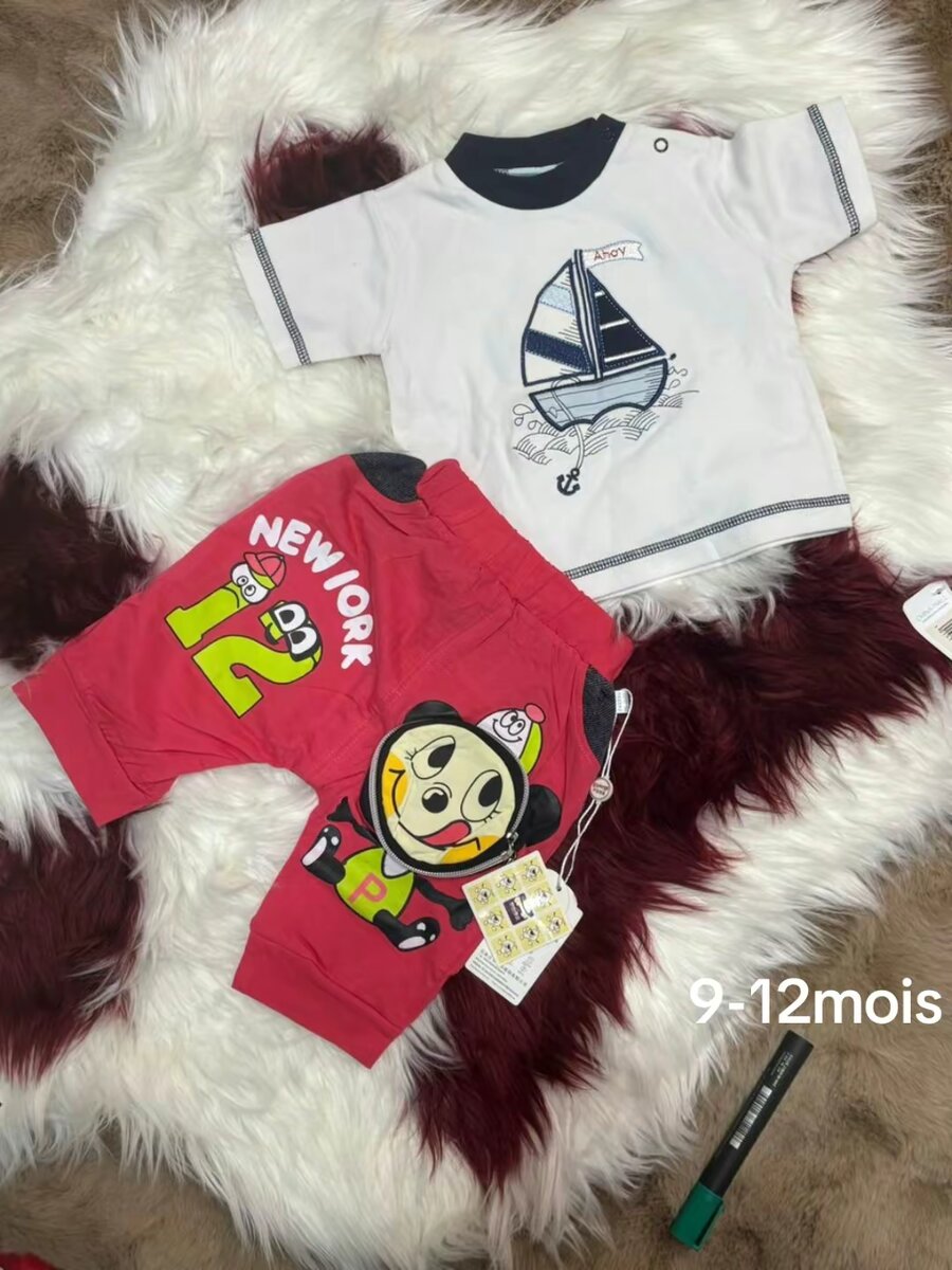 Adorable ensemble bébé 9-12 mois avec motif marin. Parfait pour les petites aventures estivales, il assure confort et style. 100% coton doux pour la peau sensible de bébé. Idéal comme cadeau ou pour le quotidien!
