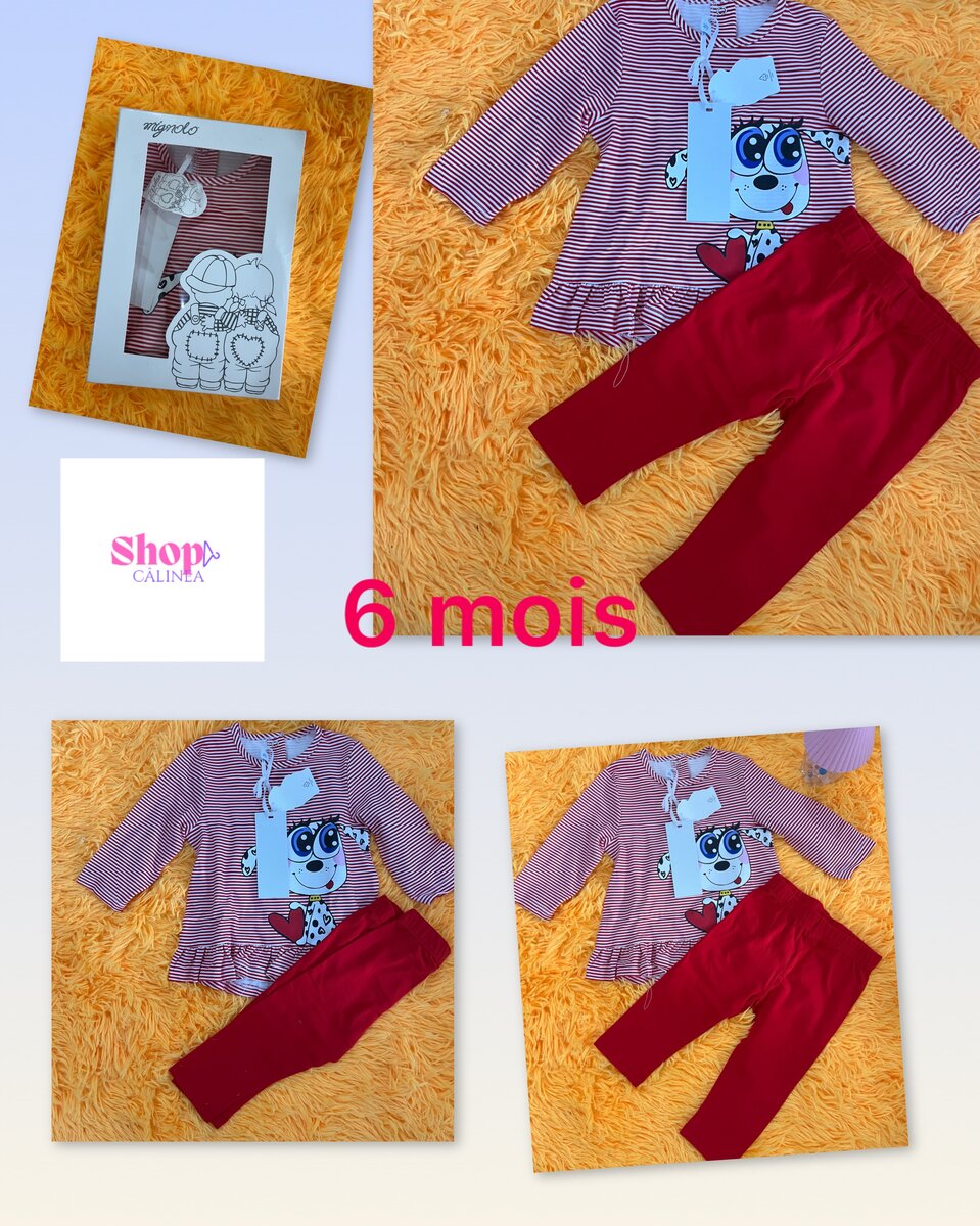 Adorable ensemble pour bébé de 6 mois, composé d'un haut rayé avec un motif amusant et d'un pantalon confortable. Parfait pour le quotidien ou les sorties, cet ensemble allie style et confort pour votre petit bout. Idéal pour offrir en cadeau !