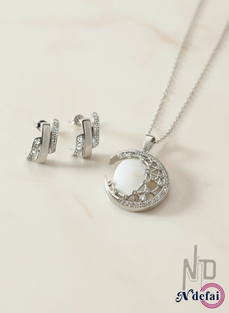 Ravissant ensemble bijou en argent composé d'un collier pendentif et de boucles d'oreilles scintillantes. Idéal pour soirées et tenues élégantes. Bijou raffiné et intemporel pour rehausser votre style.