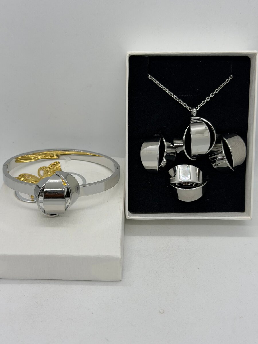 Ensemble de bijoux comprenant un collier et des boucles d'oreilles élégants avec une bague. Idéal pour les occasions spéciales, ce coffret cadeau est parfait pour un look raffiné.