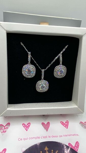 Magnifique ensemble de bijoux avec pendentif et boucles d'oreilles ornés de cristaux étincelants. Idéal pour mettre en valeur votre élégance lors d'occasions spéciales ou au quotidien. Parfait pour offrir ou se faire plaisir.