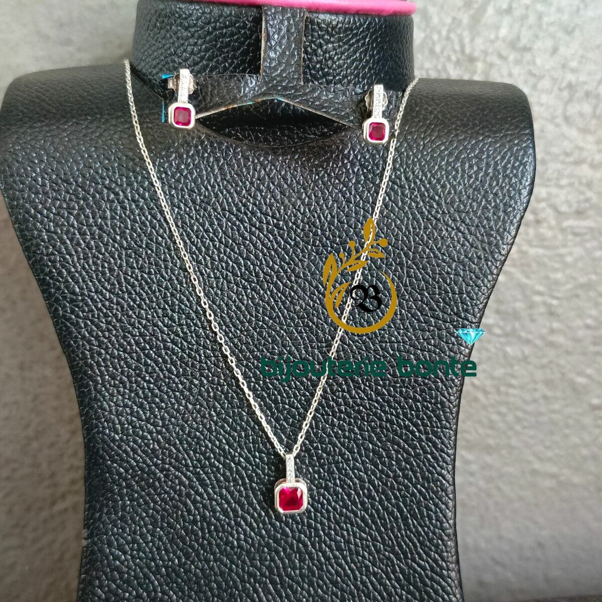 Éblouissant ensemble de bijoux en argent, serti de magnifiques pierres rouges rubis. Parfait pour ajouter une touche d'élégance à vos tenues de soirée. Idéal comme cadeau pour un être cher ou pour vous-même. Transformez chaque occasion en un moment inoubliable avec cet ensemble sophistiqué.