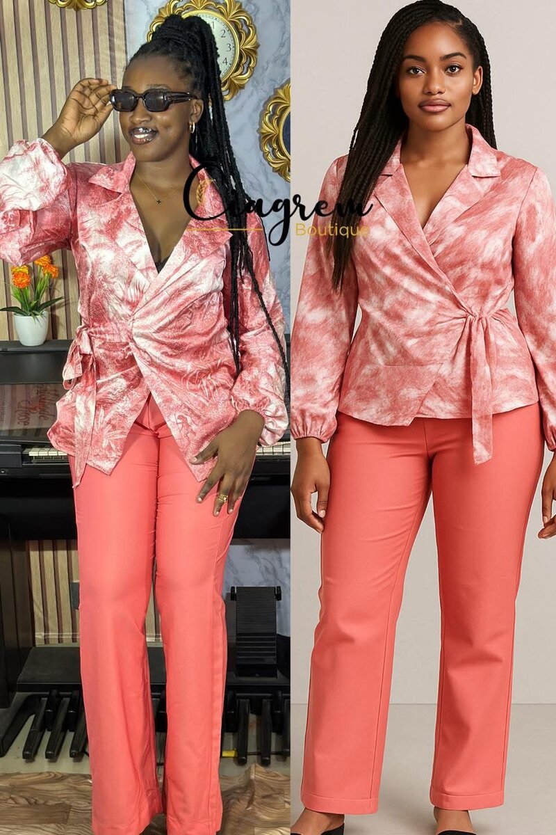 Élégant ensemble blazer et pantalon pour femme, idéal pour le bureau ou une sortie chic. Confort et style assurés avec un tissu de qualité et une coupe moderne. Parfait pour créer une impression durable.