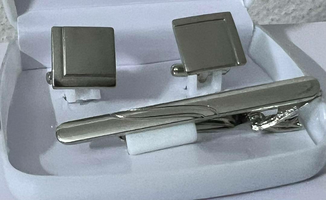 Ajoutez une touche de sophistication à votre tenue avec cet ensemble de boutons de manchette et pince à cravate. Idéal pour les occasions formelles, il offre un design intemporel en argent et or. Fabriqué avec soin, c'est le choix parfait pour les mariages, réunions d'affaires ou soirées élégantes.
