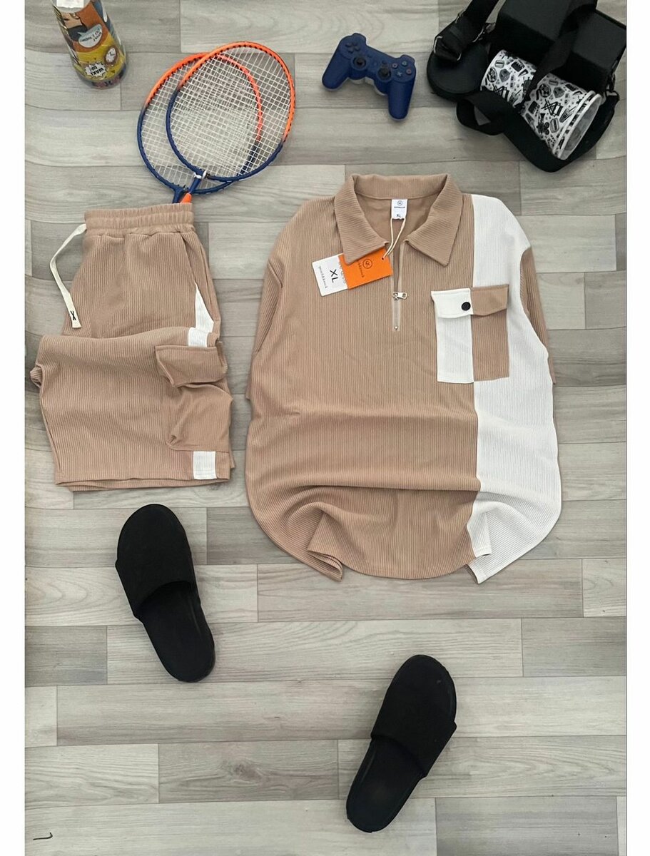 Optez pour ce look décontracté et élégant avec cet ensemble beige pour homme. Idéal pour les sorties sportives ou les journées détente. Fabriqué dans un tissu confortable, ce set est un excellent ajout à votre garde-robe.