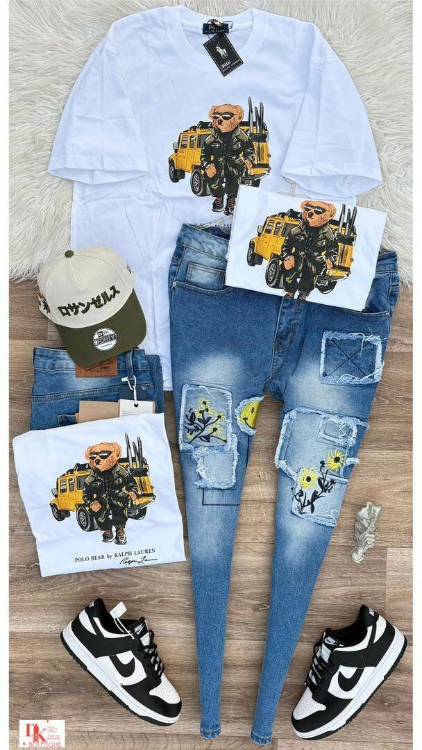 Adoptez un look urbain avec cet ensemble casual comprenant un t-shirt imprimé et un jean stylé. Parfait pour les sorties décontractées ou les virées entre amis, ce kit combine confort et style. Idéal pour ceux qui souhaitent affirmer leur personnalité avec un style unique et moderne.
