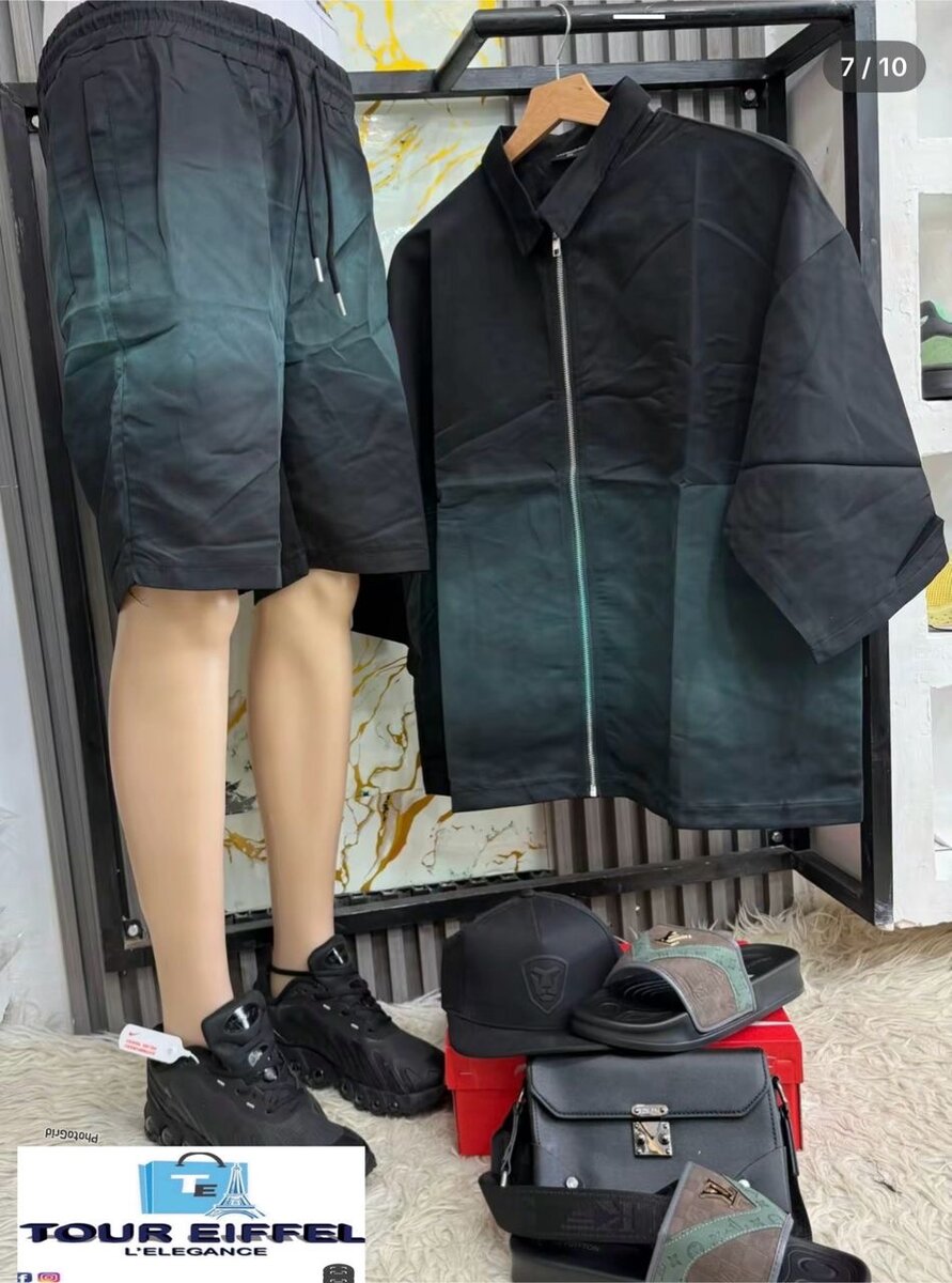 Ensemble stylé pour hommes comprenant une veste à fermeture éclair et un short assorti. Idéal pour un look urbain décontracté. Parfait pour des sorties en ville ou des après-midis décontractées. Matières confortables et design moderne qui attirent l'attention.
