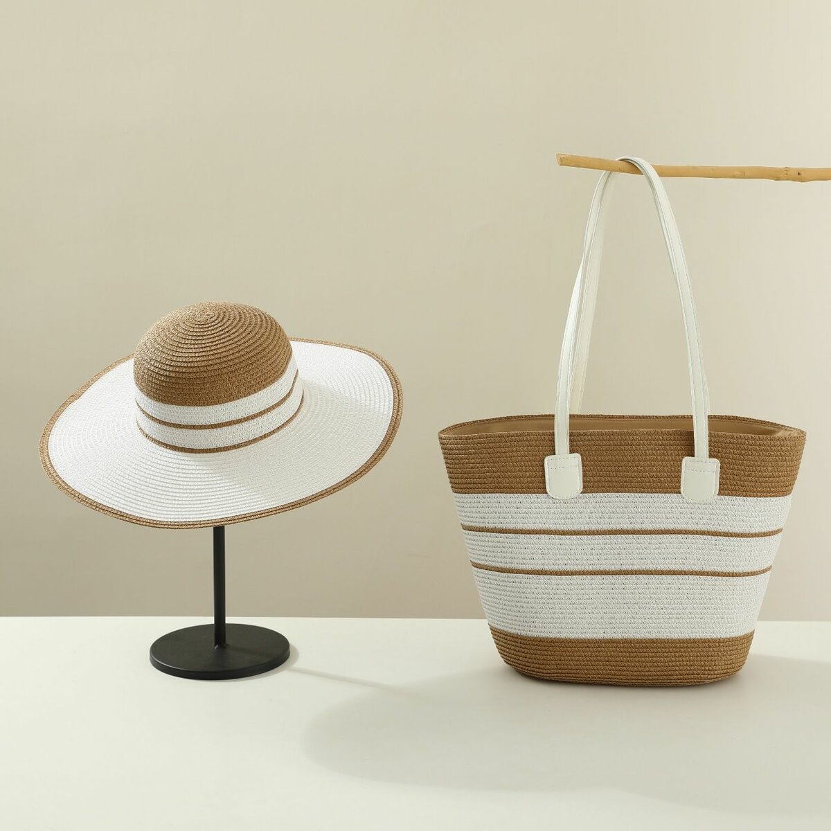 Transformez vos journées ensoleillées avec cet ensemble chapeau et sac de plage élégant. Idéal pour un look estival sophistiqué, chaque pièce est conçue en paille légère pour assurer confort et style. Parfait pour la plage, les vacances ou une promenade en ville. Complétez votre tenue chic de manière pratique et mode.