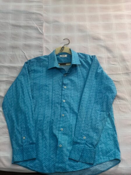 Découvrez cet ensemble estival pour hommes, composé d'une élégante chemise bleue à manches courtes et d'un pantalon blanc confortable. Idéal pour les journées chaudes, il offre à la fois style et légèreté.