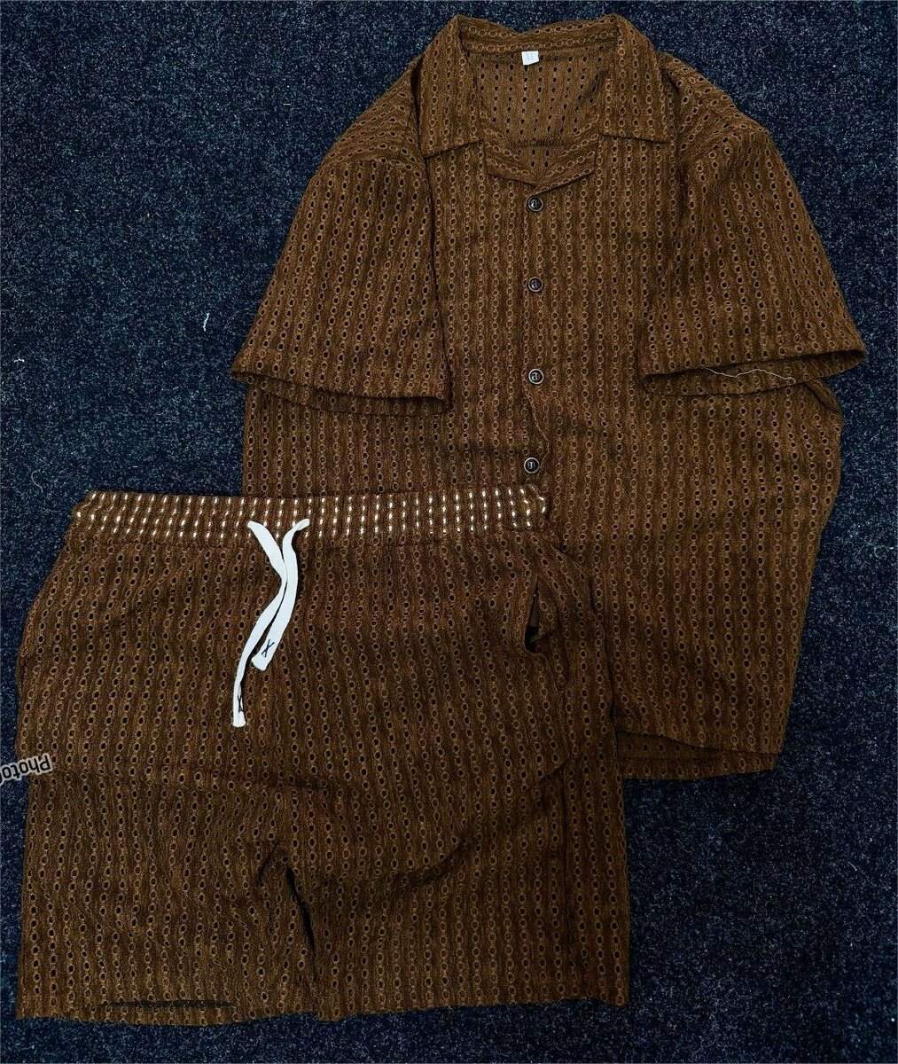 Découvrez cet ensemble tendance composé d'une chemise légère à manches courtes et d'un short assorti. Parfait pour un look estival décontracté, il allie confort et style grâce à son tissu doux à motif unique. Idéal pour les journées chaudes ou les vacances.