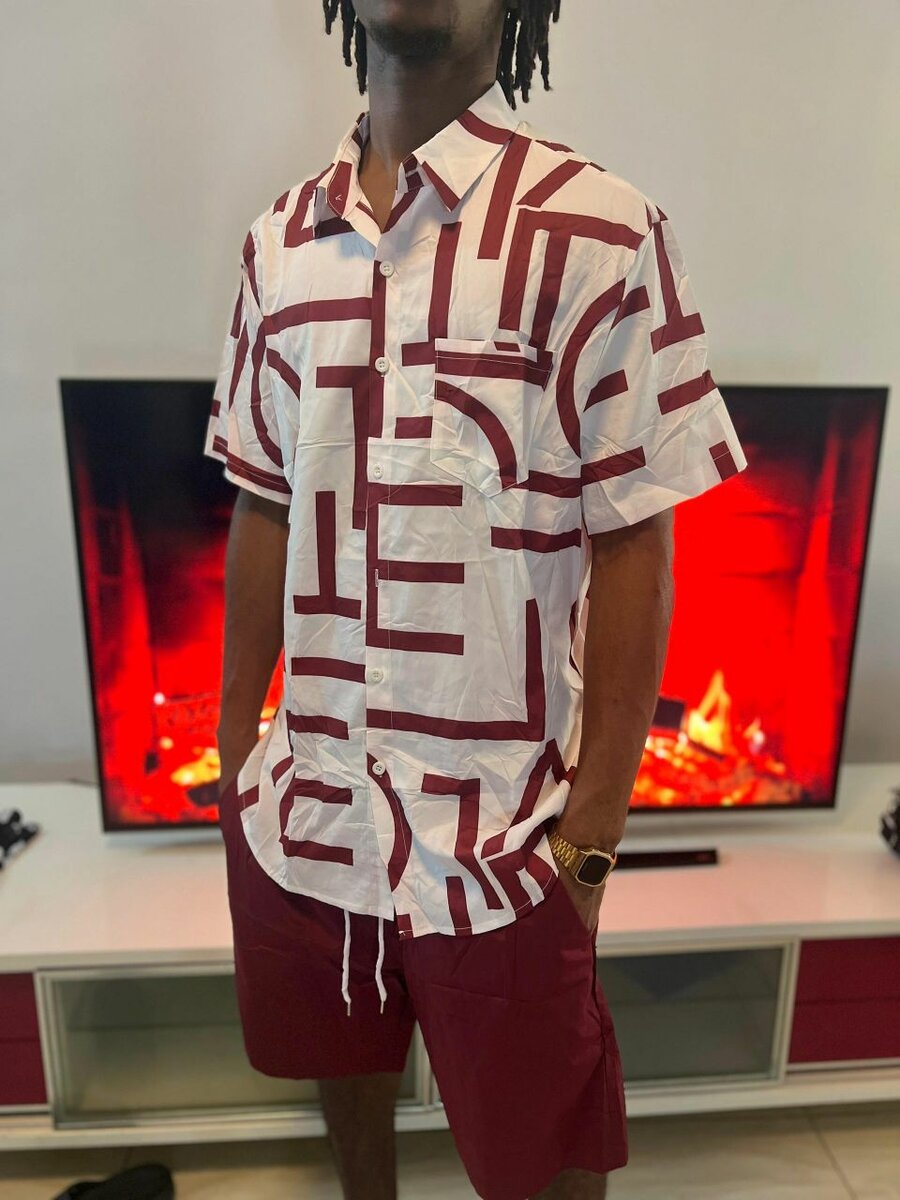 Optez pour cette chemise moderne à manches courtes avec motifs graphiques rouges. Idéale pour un look décontracté et stylé. Parfaite pour les sorties entre amis ou les occasions estivales. Son tissu léger assure un confort optimal.