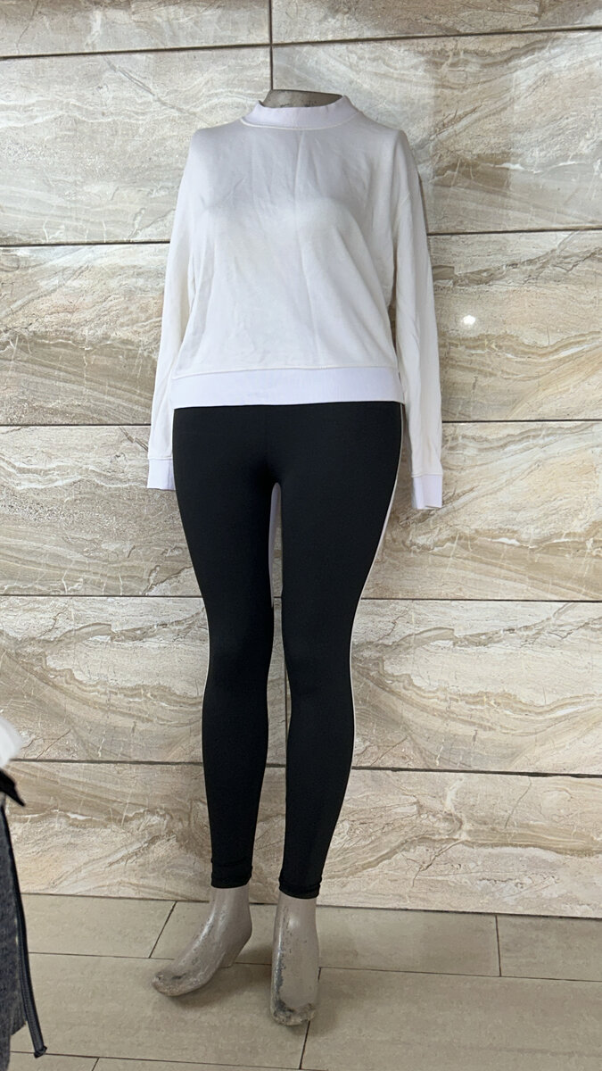 Optez pour cet ensemble chic composé d'un pull blanc et d'un legging noir. Parfait pour un style décontracté et élégant en toutes occasions.