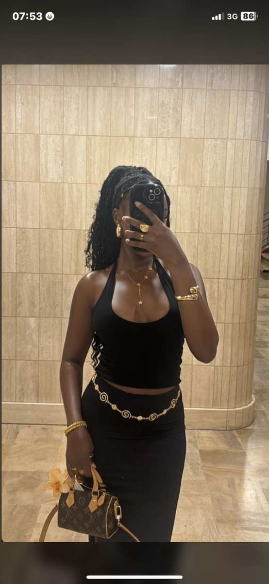 Découvrez ce magnifique ensemble noir pour femme, composé d'un haut à bretelles larges et d'une jupe élégante. Parfait pour une soirée ou un événement spécial, cet ensemble est à la fois confortable et tendance. Complétez votre tenue avec de beaux accessoires dorés pour une allure éblouissante. Idéal pour les femmes modernes et élégantes, cet ensemble sera votre meilleur atout style.